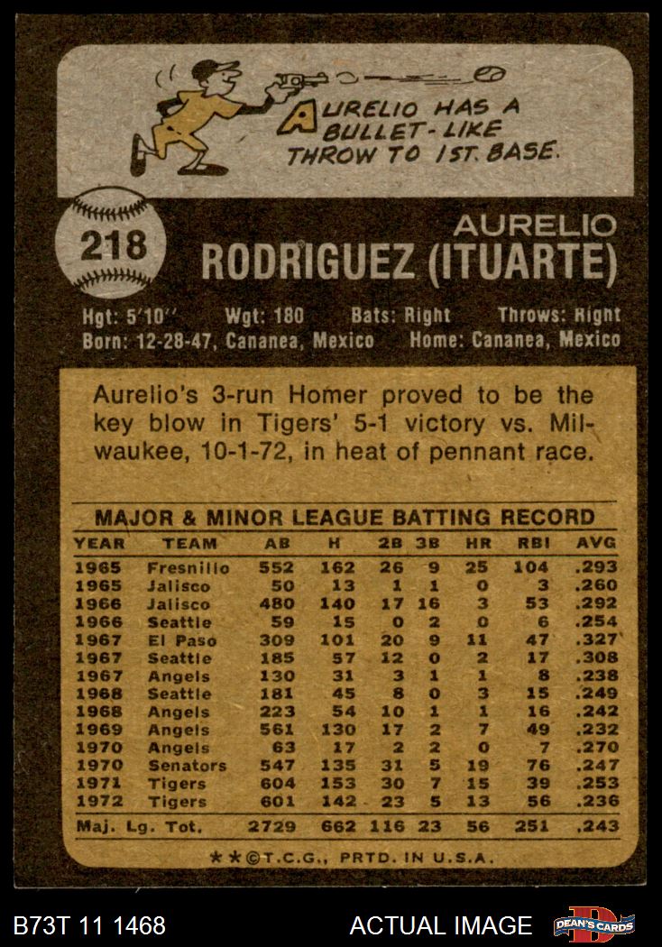 1973 Topps #218 Aurelio Rodriguez