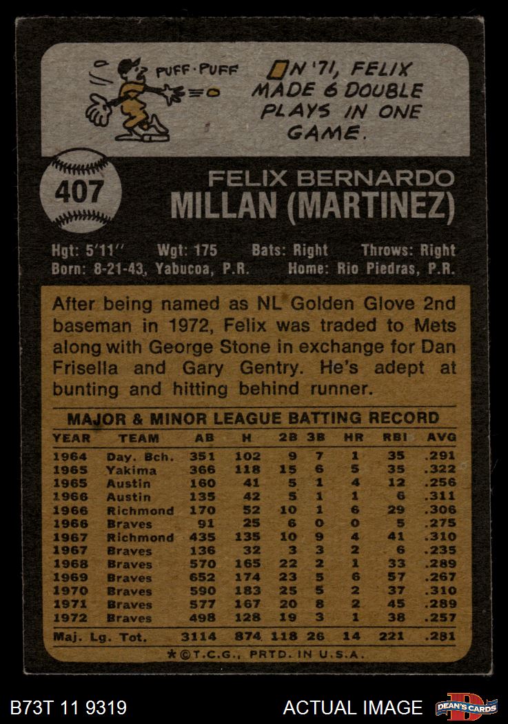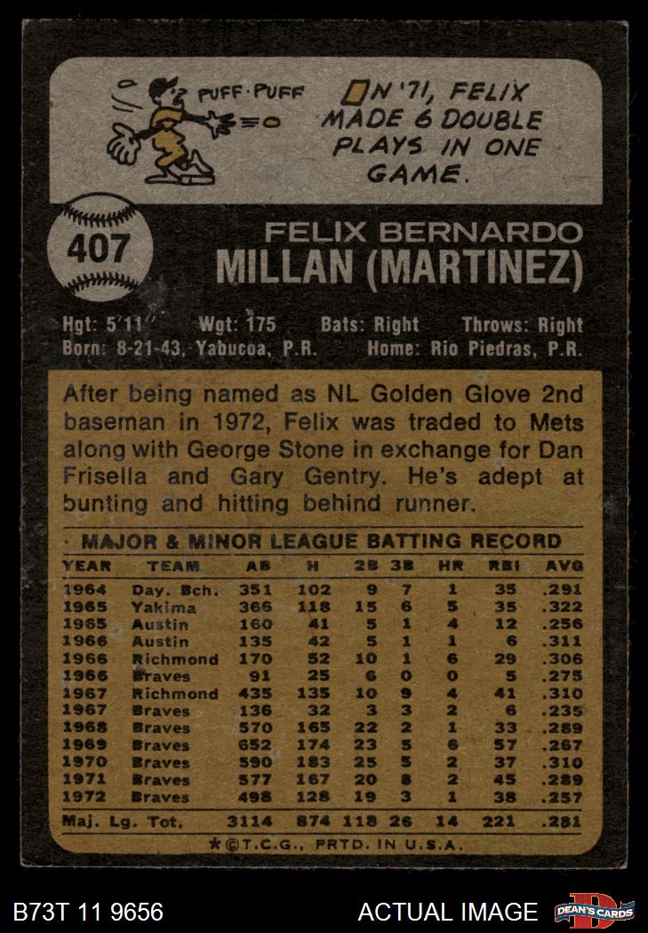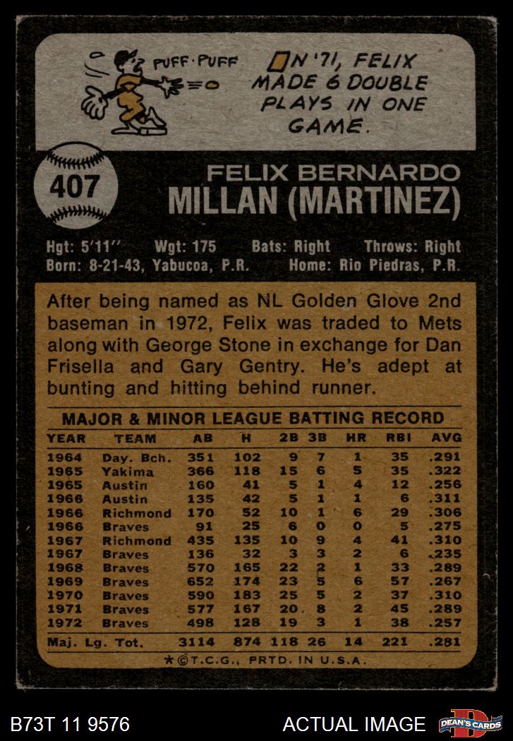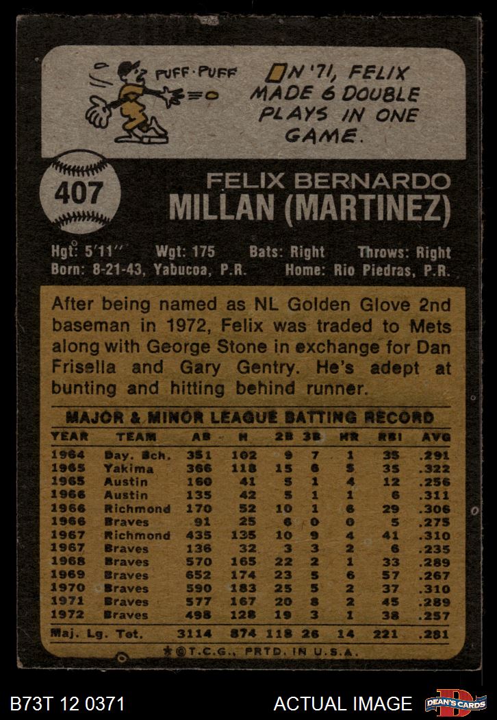 1973 Topps #407 Felix Millan 3 - VG