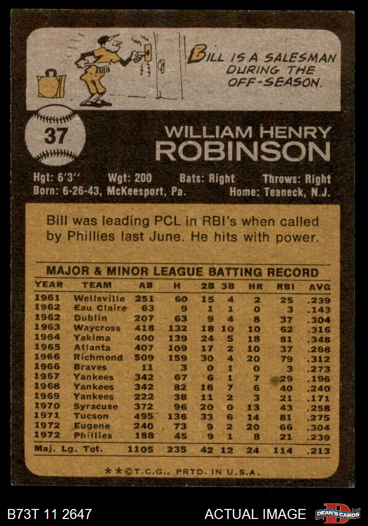 1973 Topps #37 Bill Robinson 5 - EX