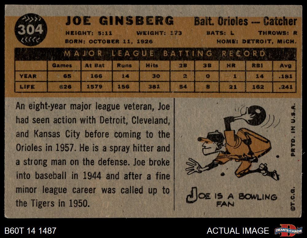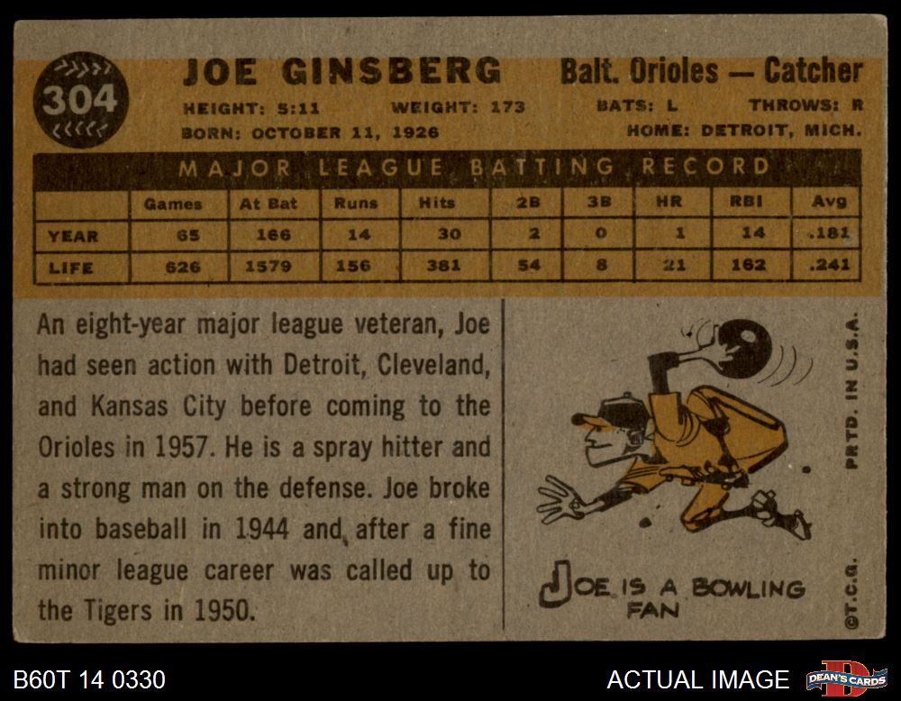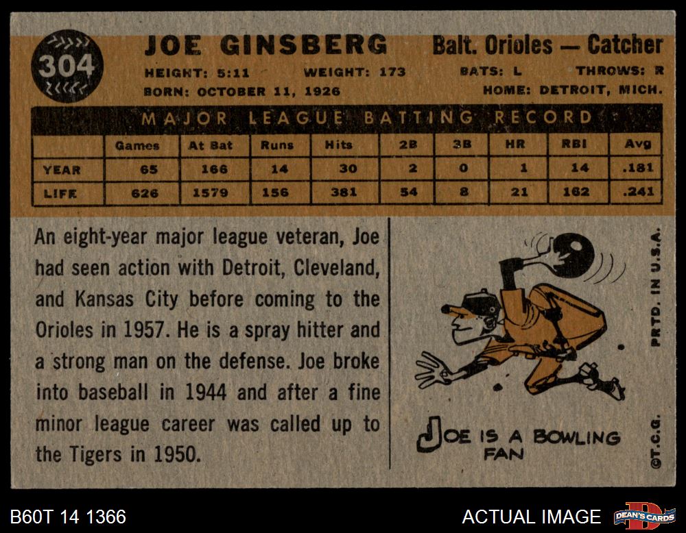 1960 Topps #304 Joe Ginsberg