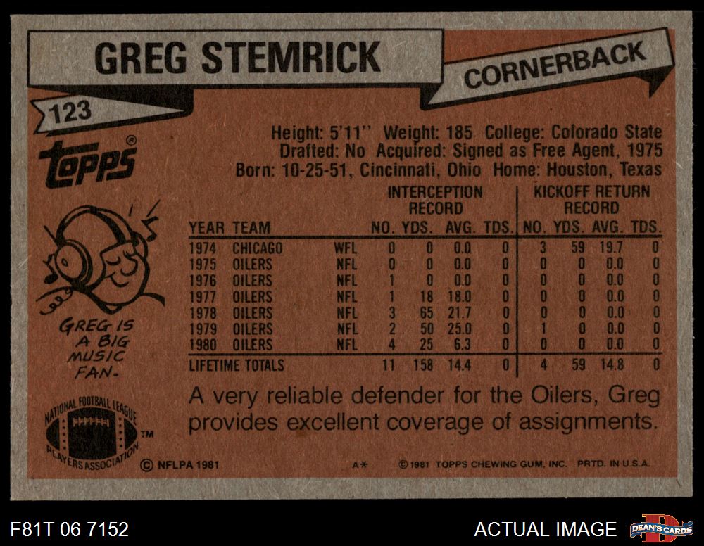 1981 Topps Football Cards (6,264 available)1981 Topps Oilers (285 available)
