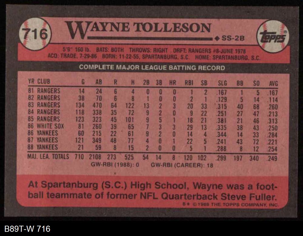 1989 Topps #716 Wayne Tolleson 8 - NM/MT