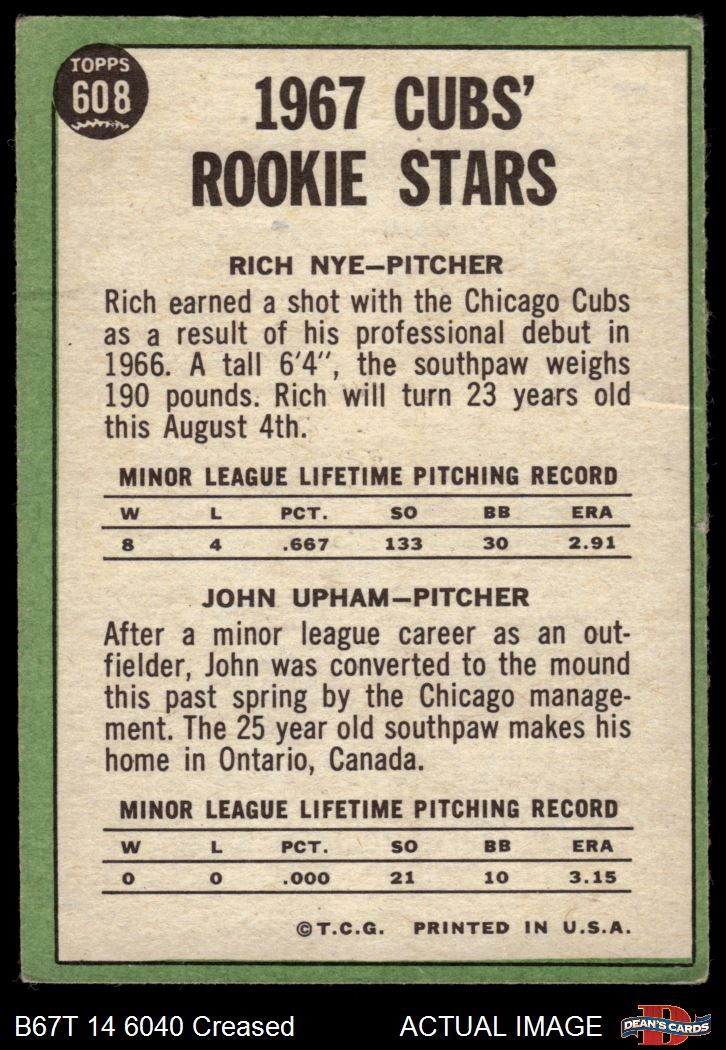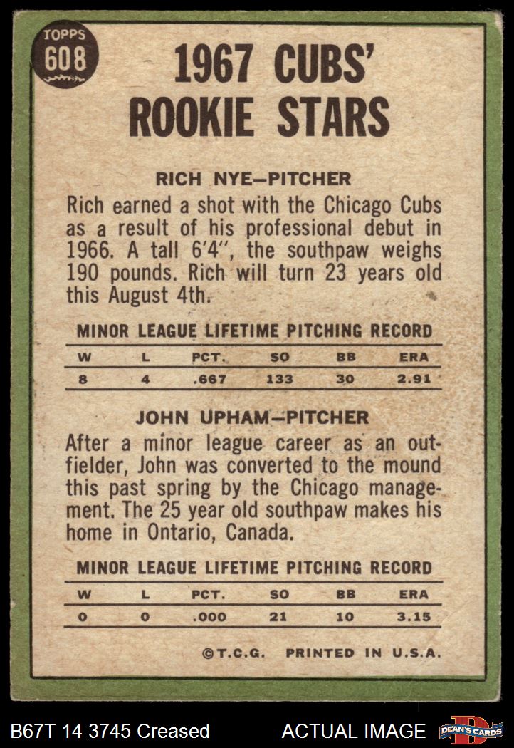 1967 Topps #608  -  Rich Nye / John Upham Cubs Rookies Front Thumbnail