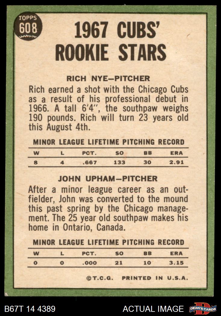 1967 Topps #608 - Rich Nye / John Upham Cubs Rookies 5 - EX