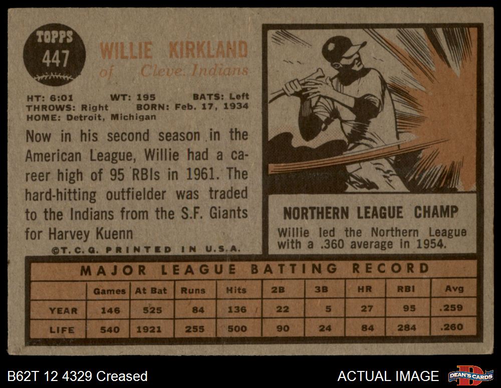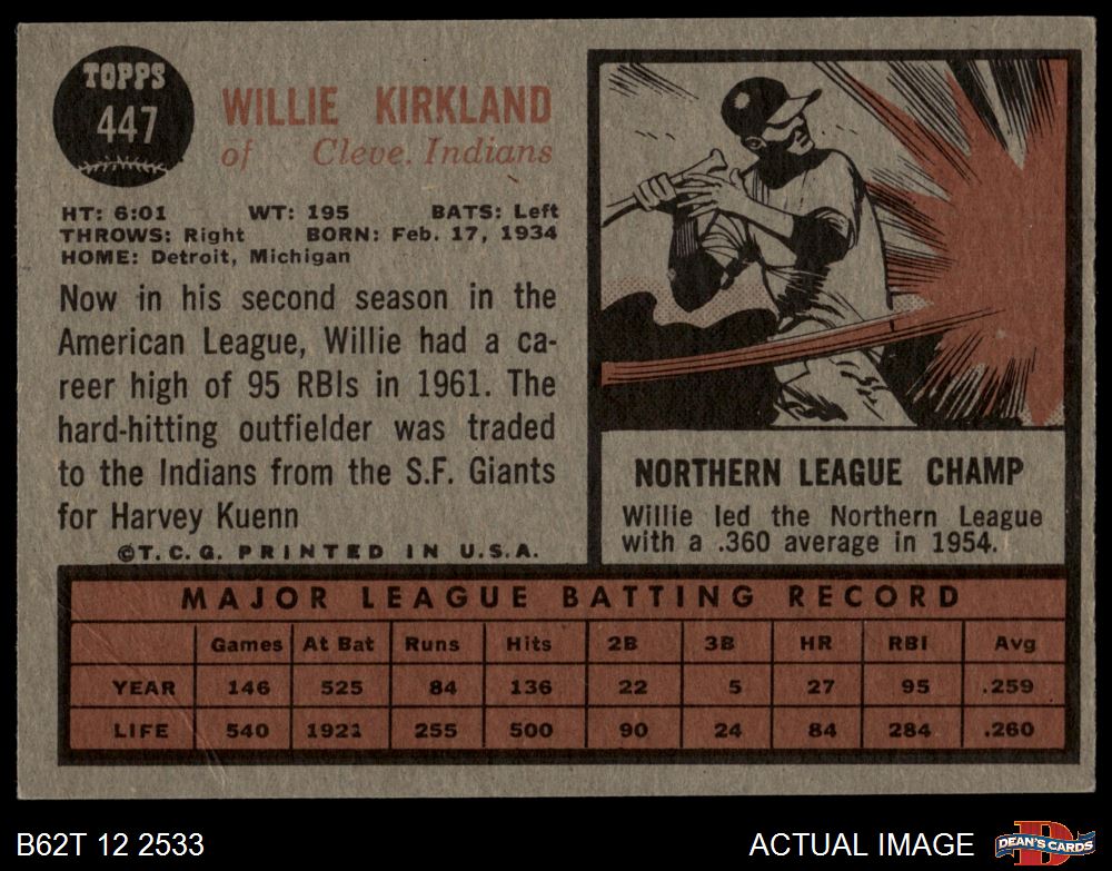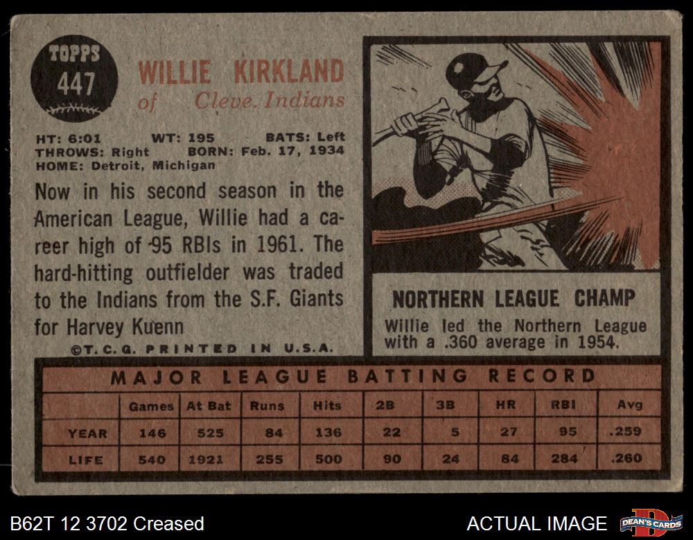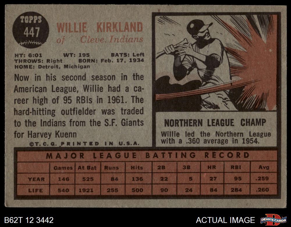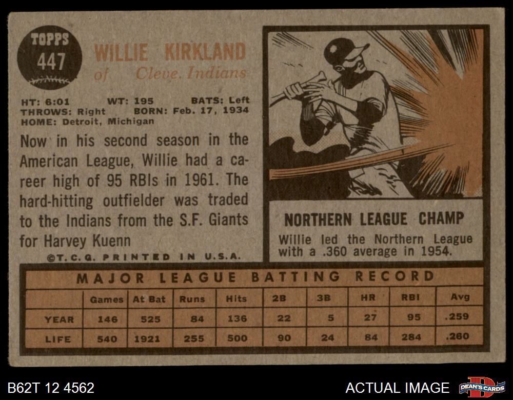 1962 Topps #447 Willie Kirkland