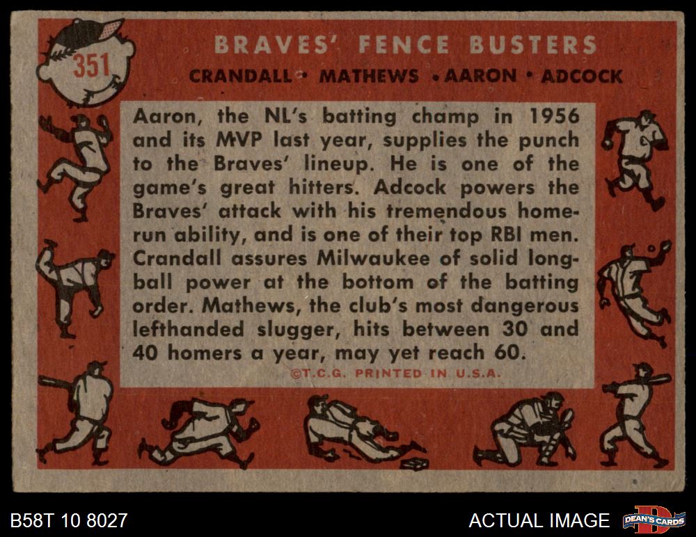 1958 Topps #351 - Hank Aaron / Eddie Mathews / Joe Adcock / Del Crandall Braves Fence Busters 1.5 - FAIR