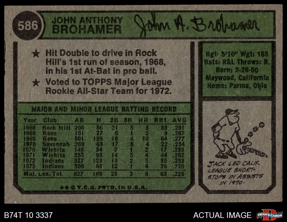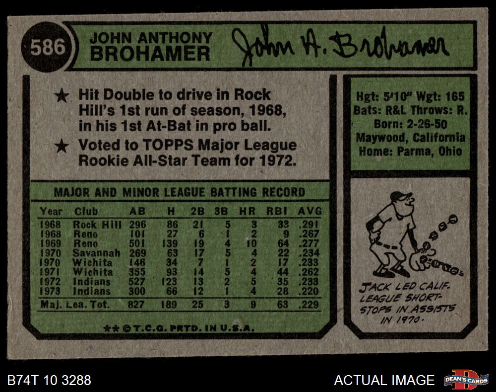 1974 Topps #586 Jack Brohamer 4 - VG/EX