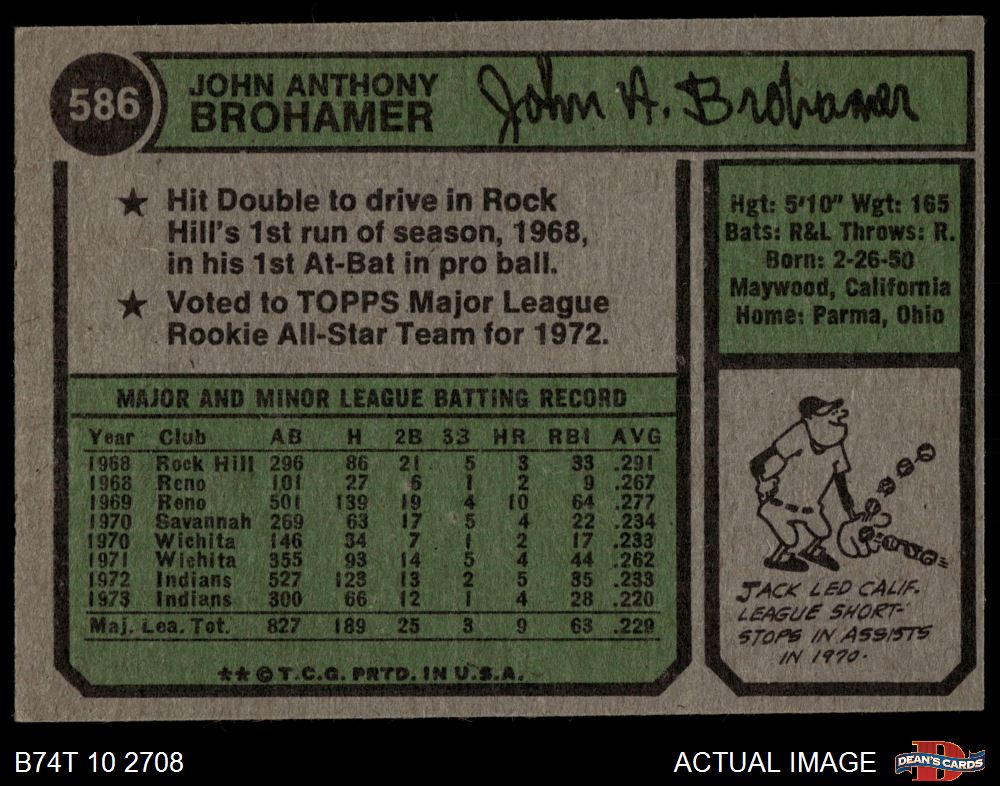 1974 Topps #586 Jack Brohamer 6 - EX/MT