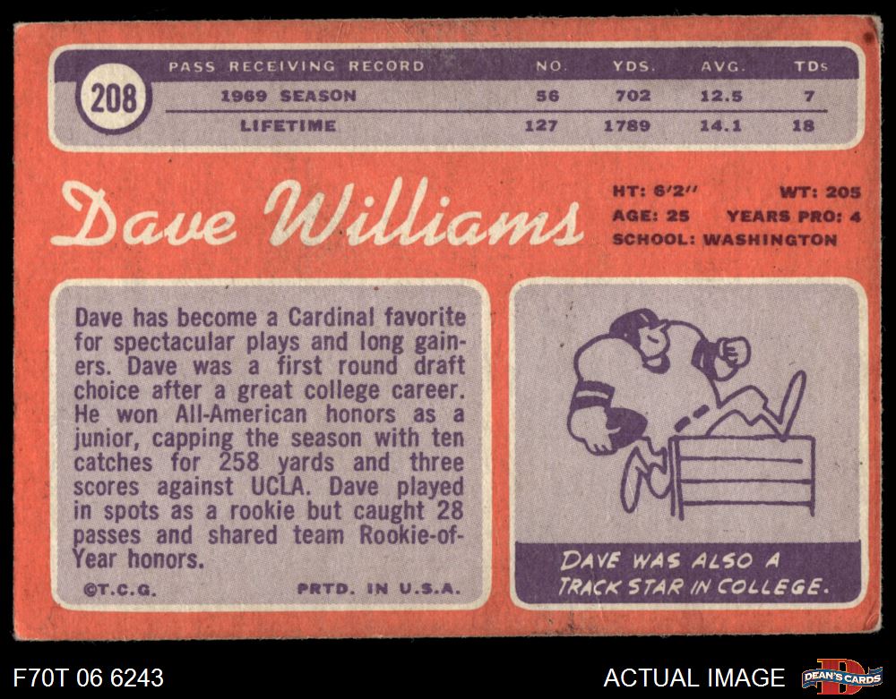 1970 Topps #208 Dave Williams 2 - GOOD