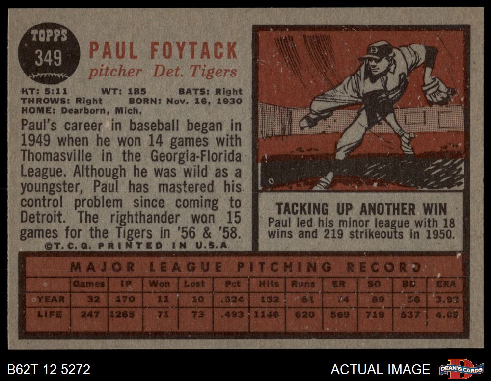 1962 Topps #349 Paul Foytack 6 - EX/MT