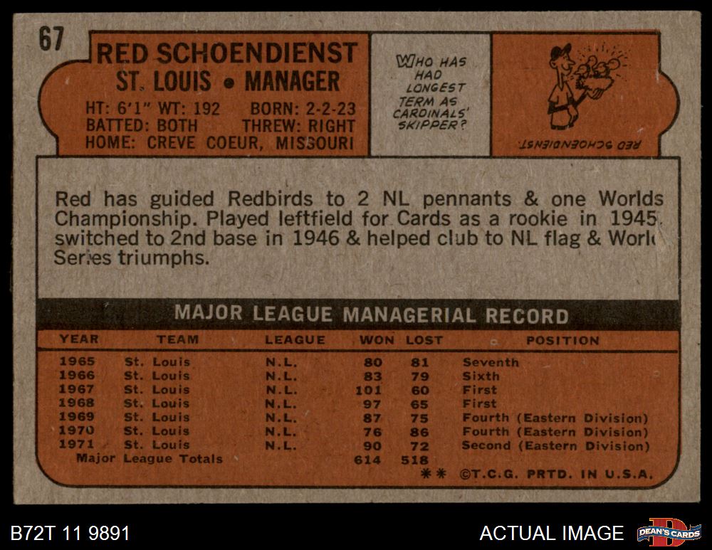 1972 Topps #67 Red Schoendienst 1 - POOR