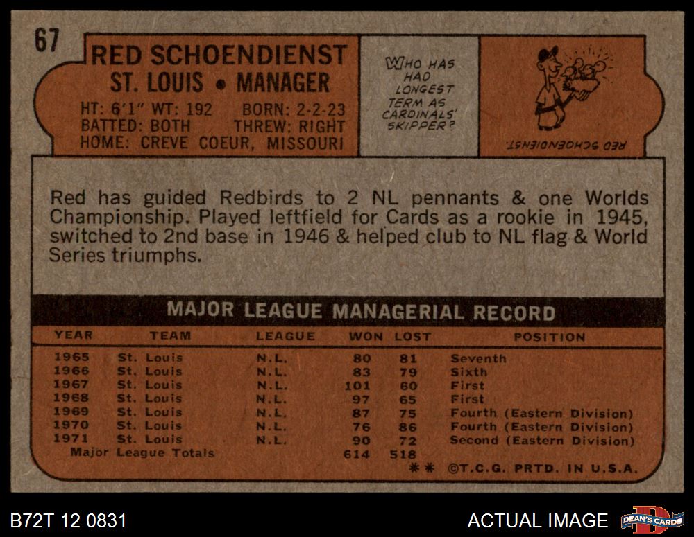 1972 Topps #67 Red Schoendienst 5.5 - EX+