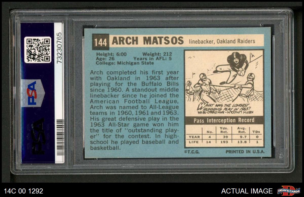 1964 Topps #144 Archie Matsos PSA 8 - NM/MT