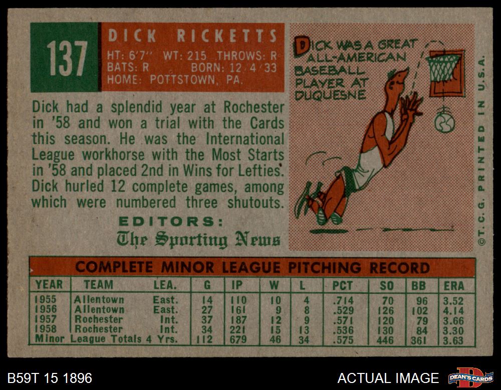 1959 Topps #137 Dick Ricketts 6 - EX/MT