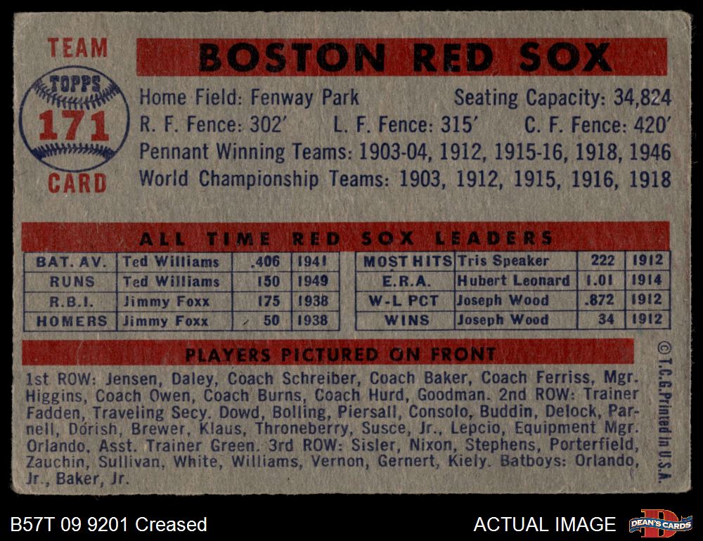 1957 Topps #171 Red Sox Team 1.5 - FAIR