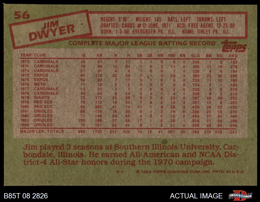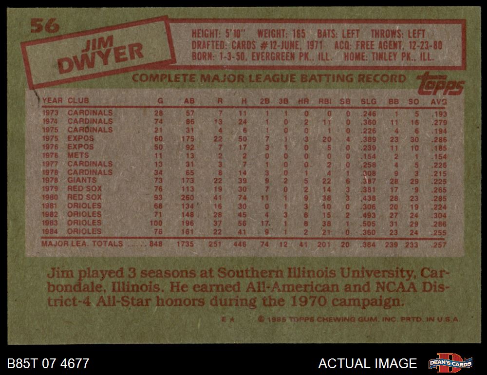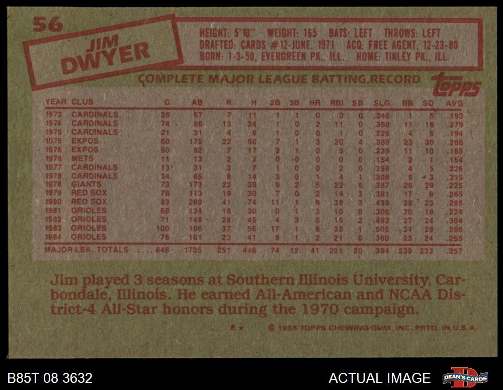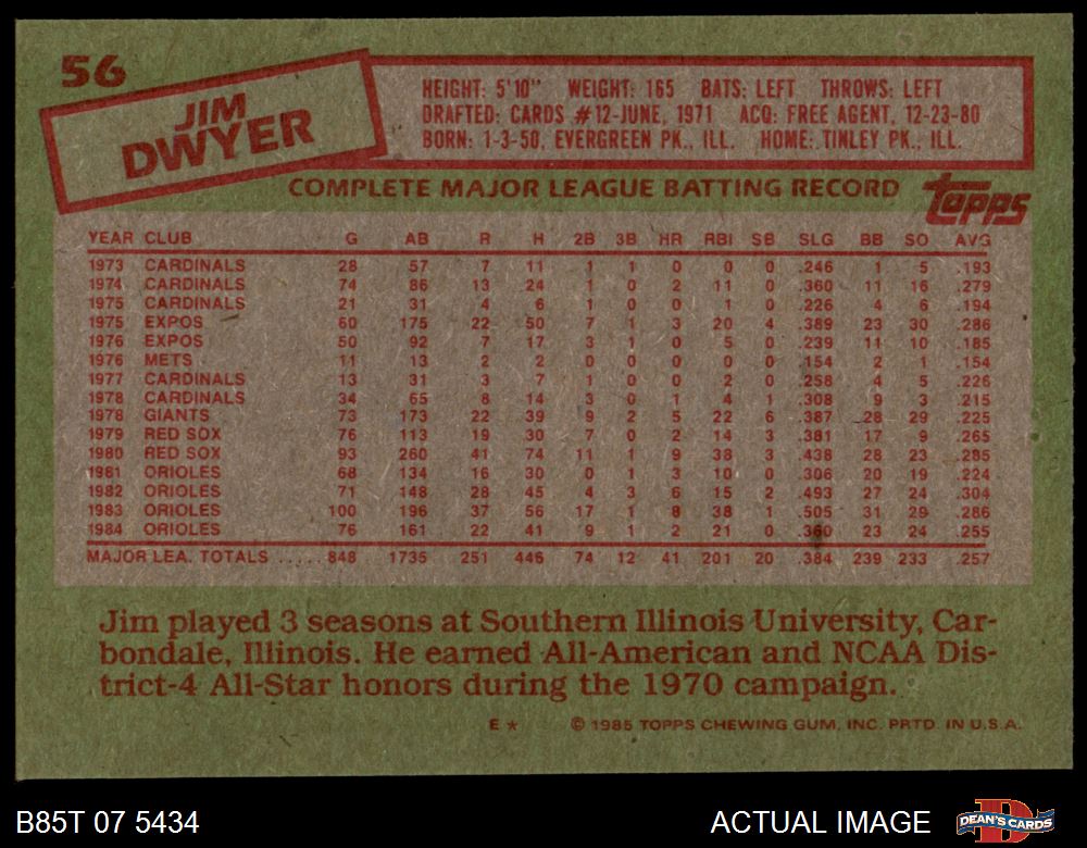 1985 Topps #56 Jim Dwyer