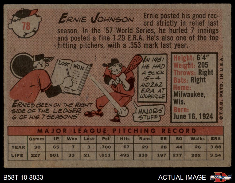 1958 Topps #78 WN Ernie Johnson 4 - VG/EX