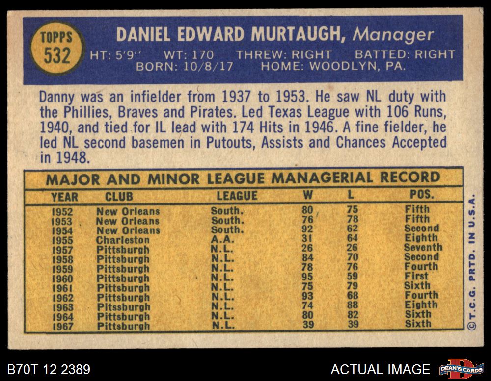 1970 Topps #532 Danny Murtaugh 5.5 - EX+