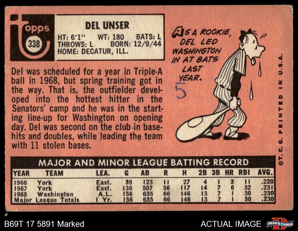 1969 Topps #338 Del Unser Front Thumbnail