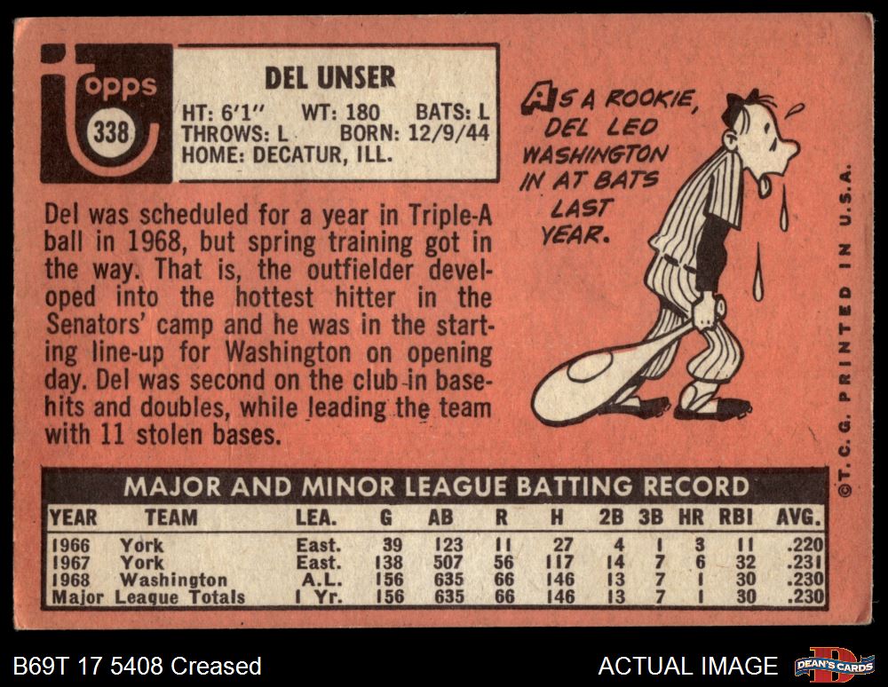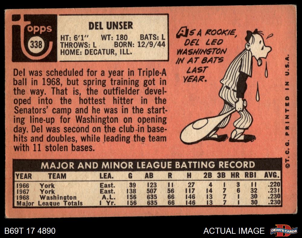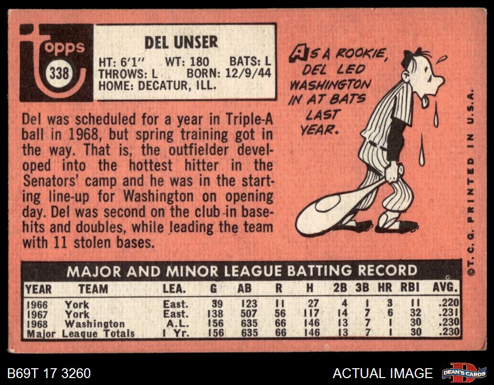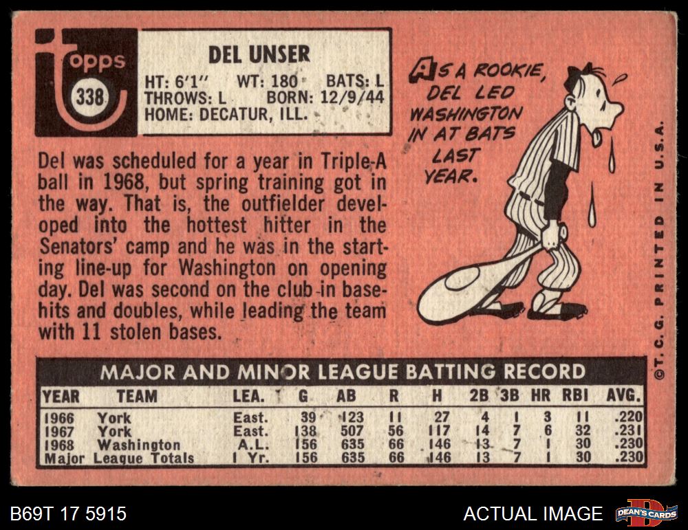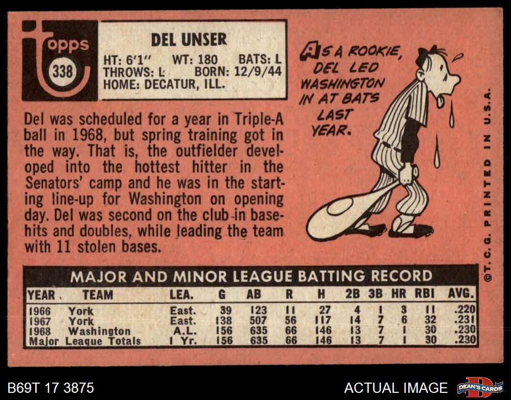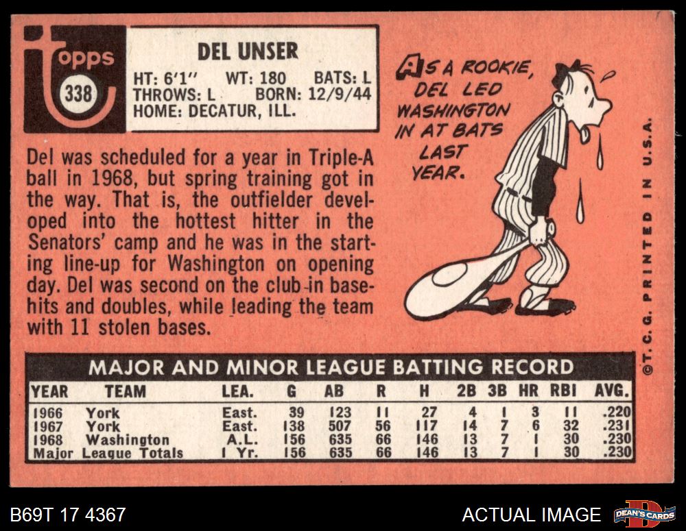 1969 Topps #338 Del Unser