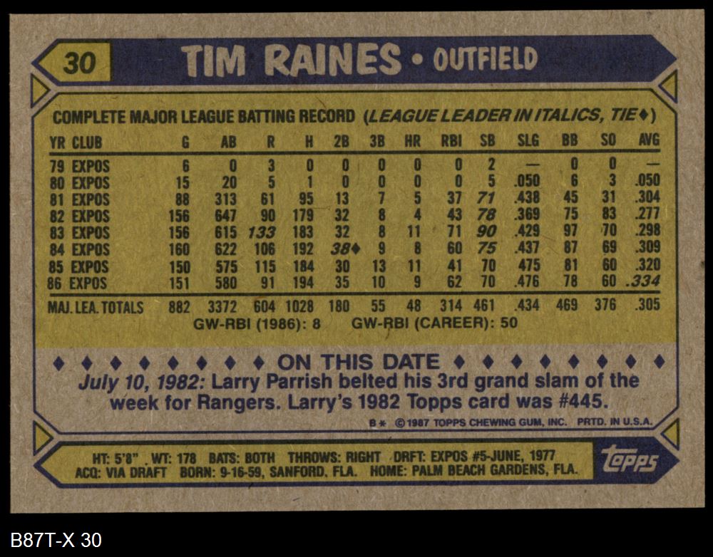 1987 Topps #30 Tim Raines