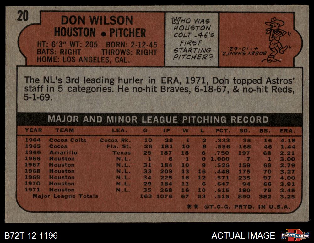 1972 Topps #20 Don Wilson 5 - EX