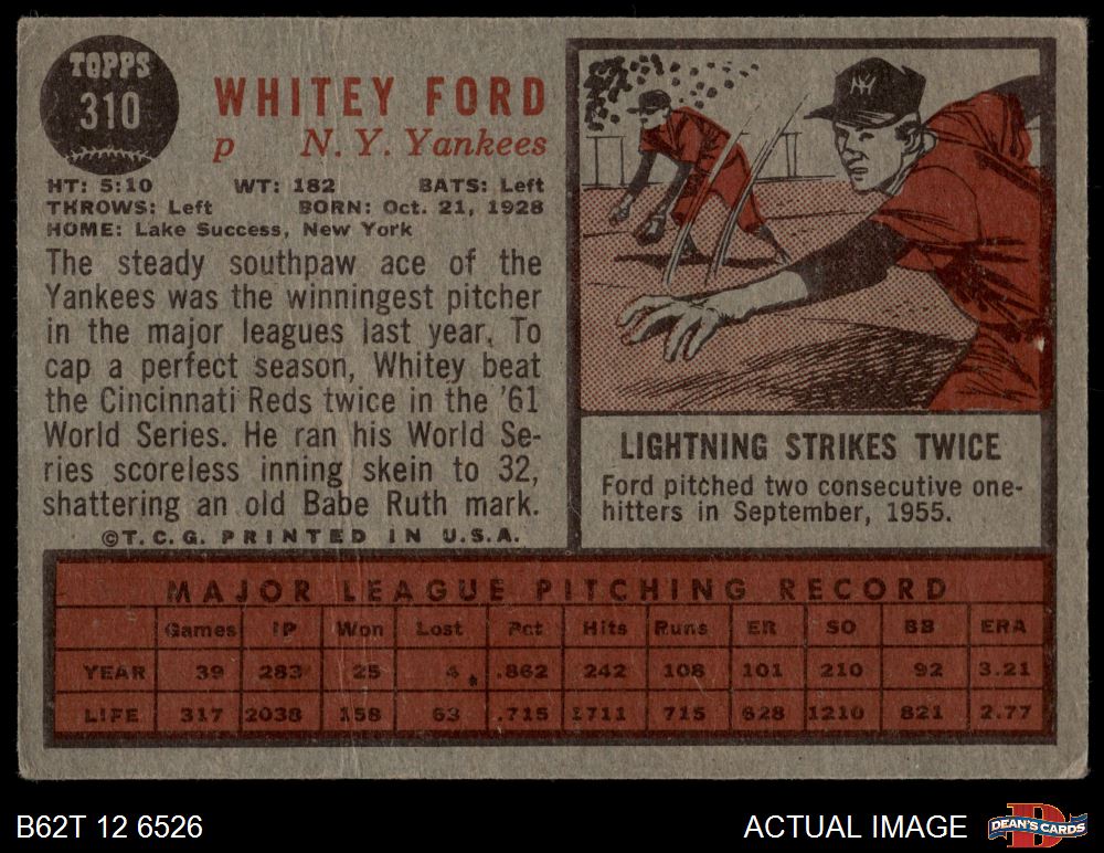 1962 Topps #310 Whitey Ford AUTHENTIC