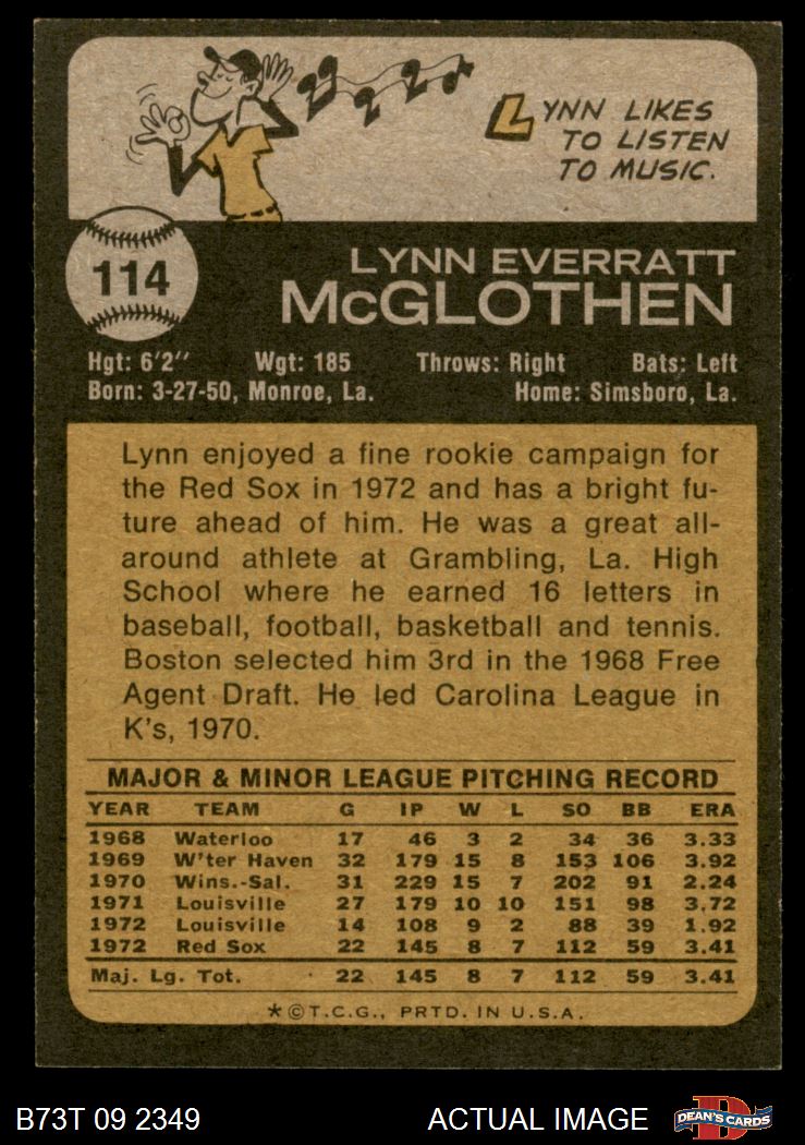 1973 Topps #114 Lynn McGlothen 7 - NM
