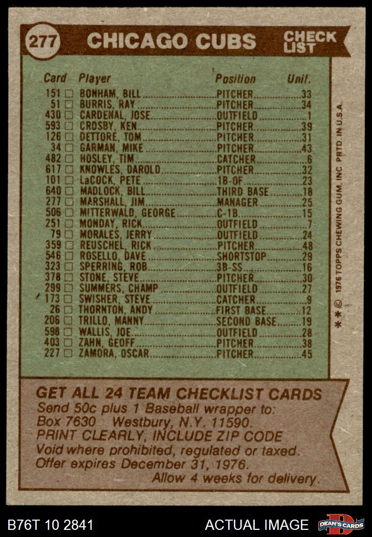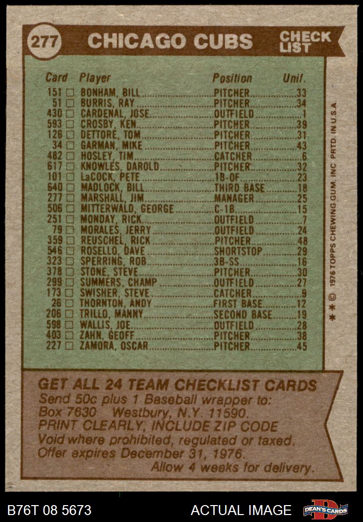 1976 Topps #277 - Jim Marshall Cubs Team Checklist 7.5 - NM+