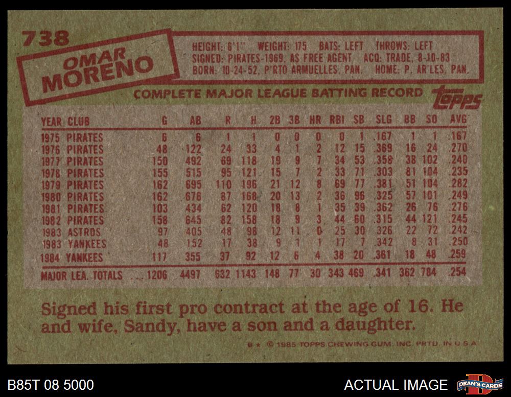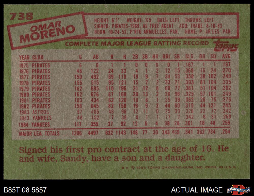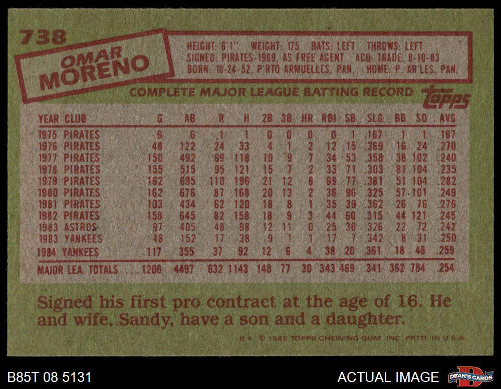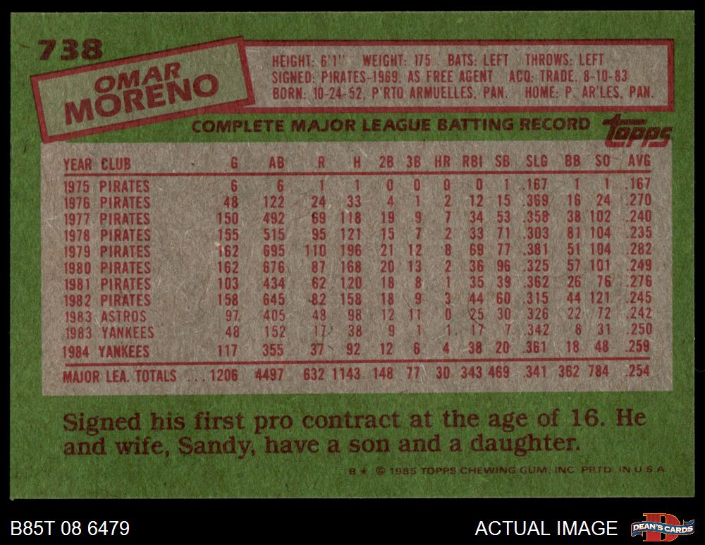 1985 Topps #738 Omar Moreno