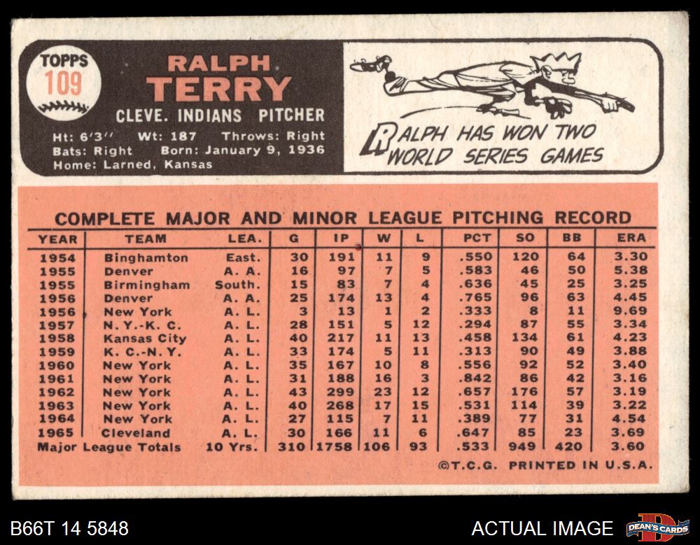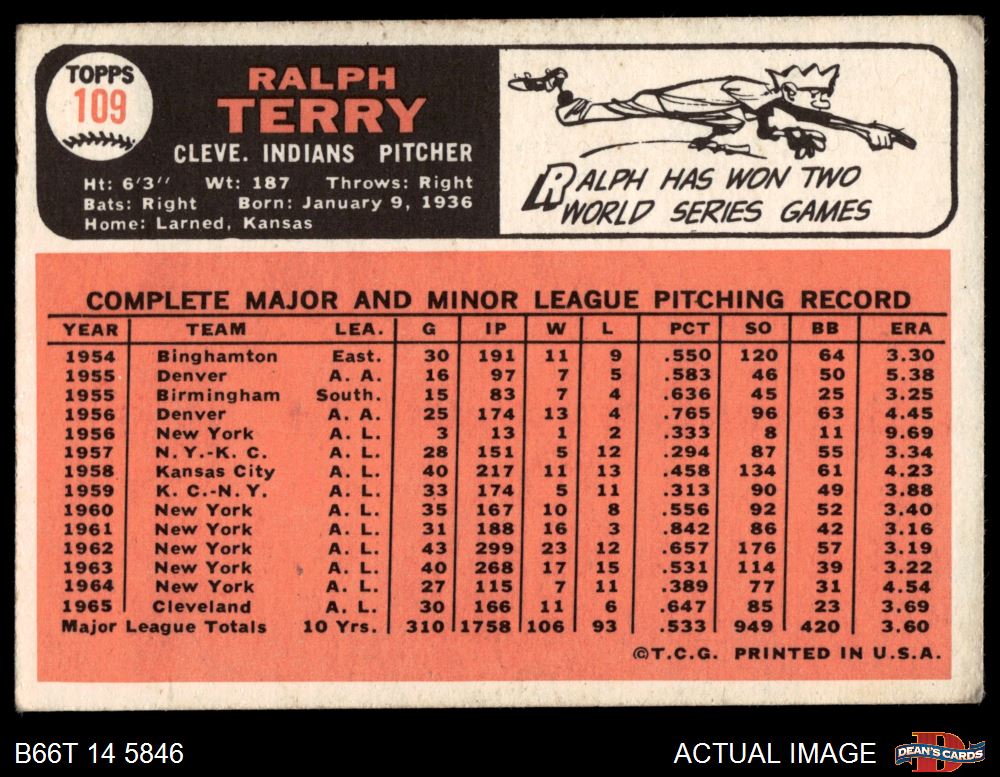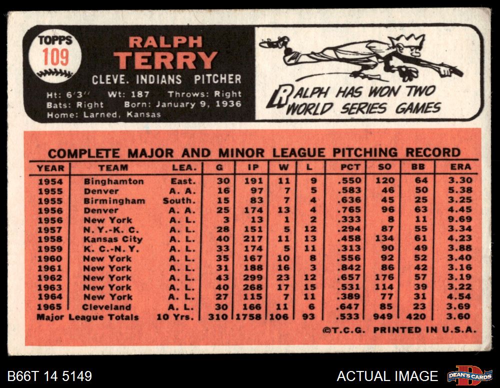 1966 Topps #109 Ralph Terry 2 - GOOD