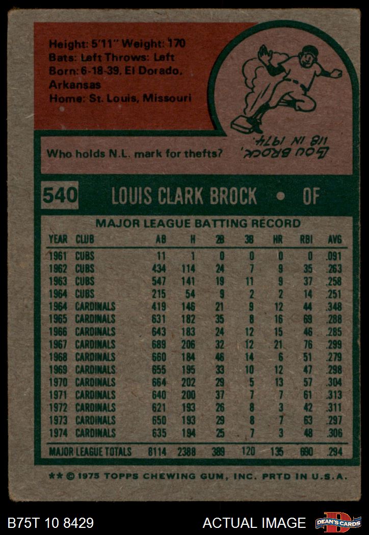 1975 Topps #540 Lou Brock 1.5 - FAIR