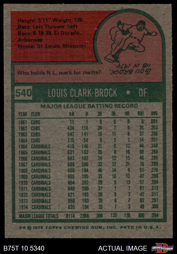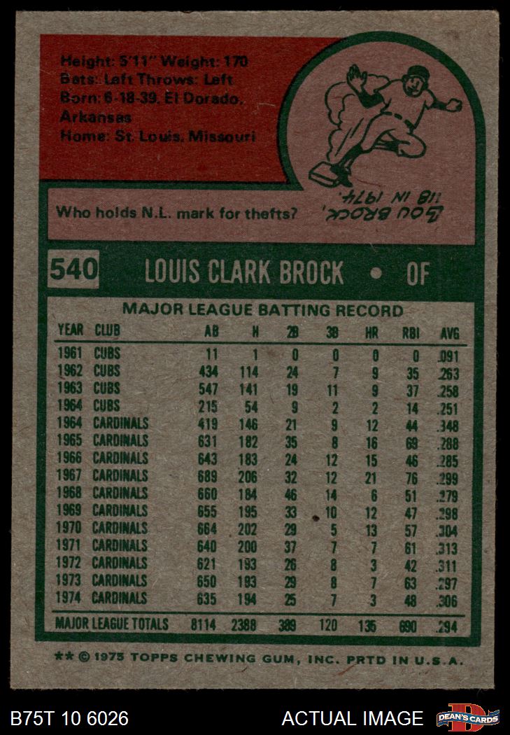 1975 Topps #540 Lou Brock
