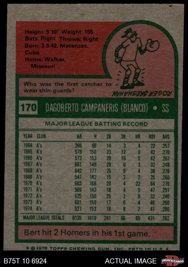 1975 Topps #170 Bert Campaneris 4 - VG/EX