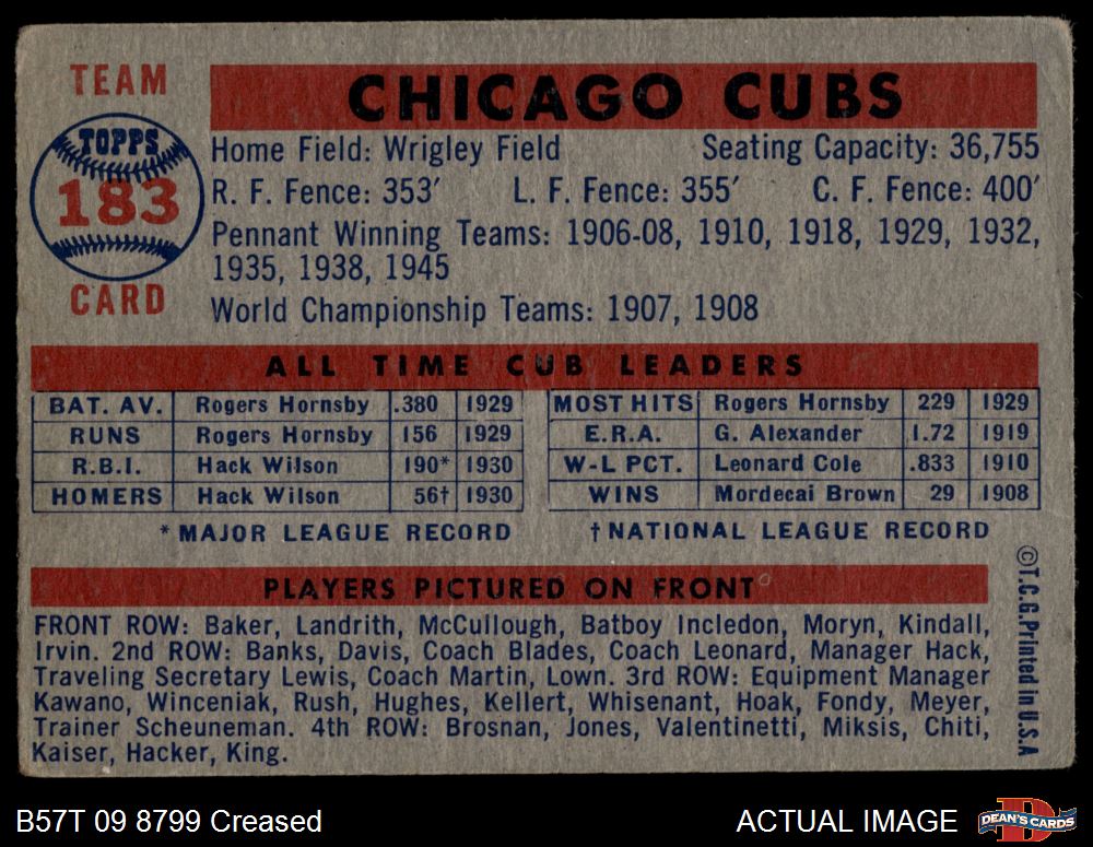 1957 Topps #183 Cubs Team 1 - POOR