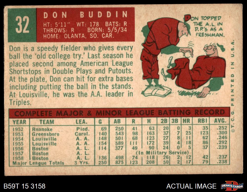 1959 Topps #32 Don Buddin 3 - VG