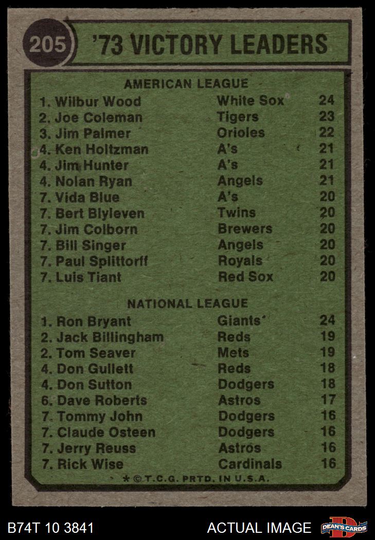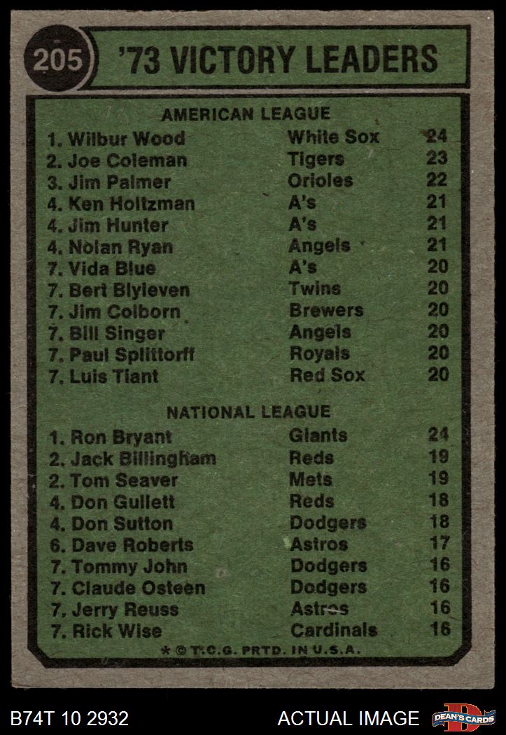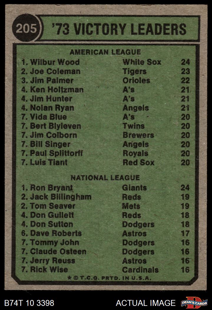1974 Topps #205 - Wilbur Wood / Ron Bryant Pitching Leaders 5 - EX