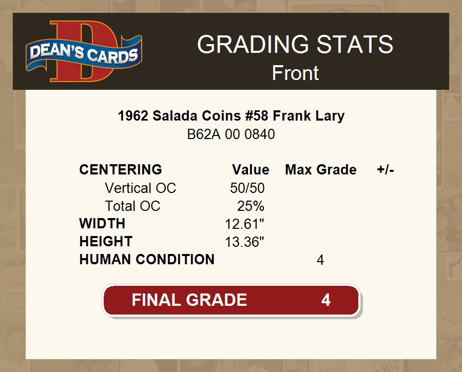 1962 Salada Coins #58 Frank Lary 4 - VG/EX