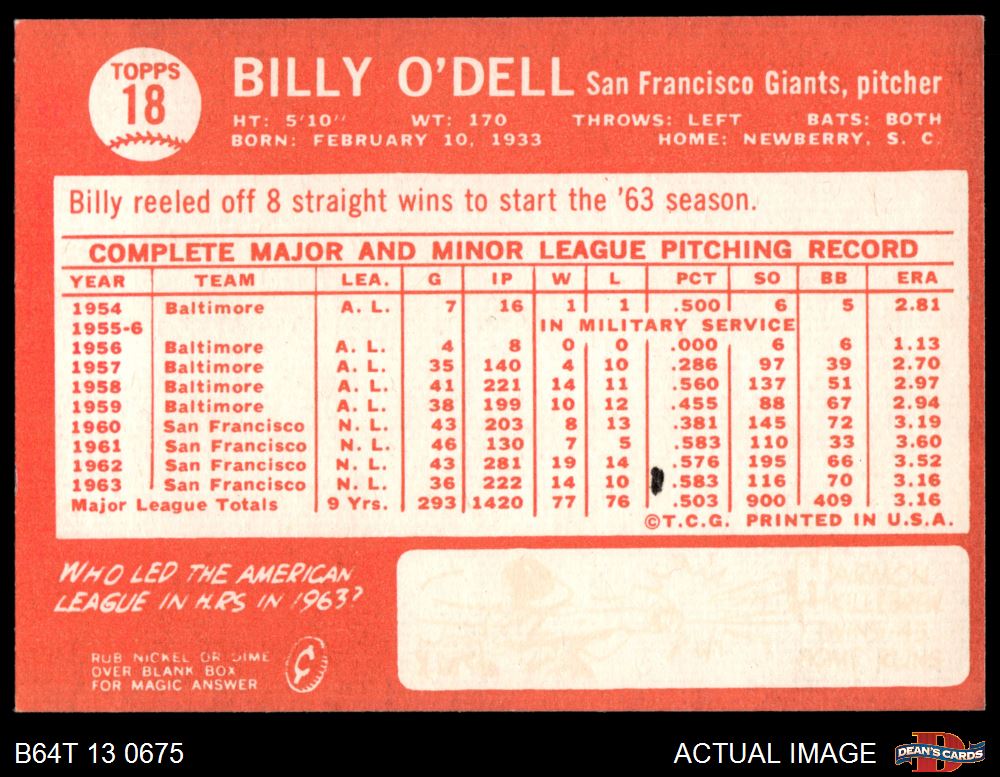 1964 Topps #18 Billy O'Dell 4 - VG/EX