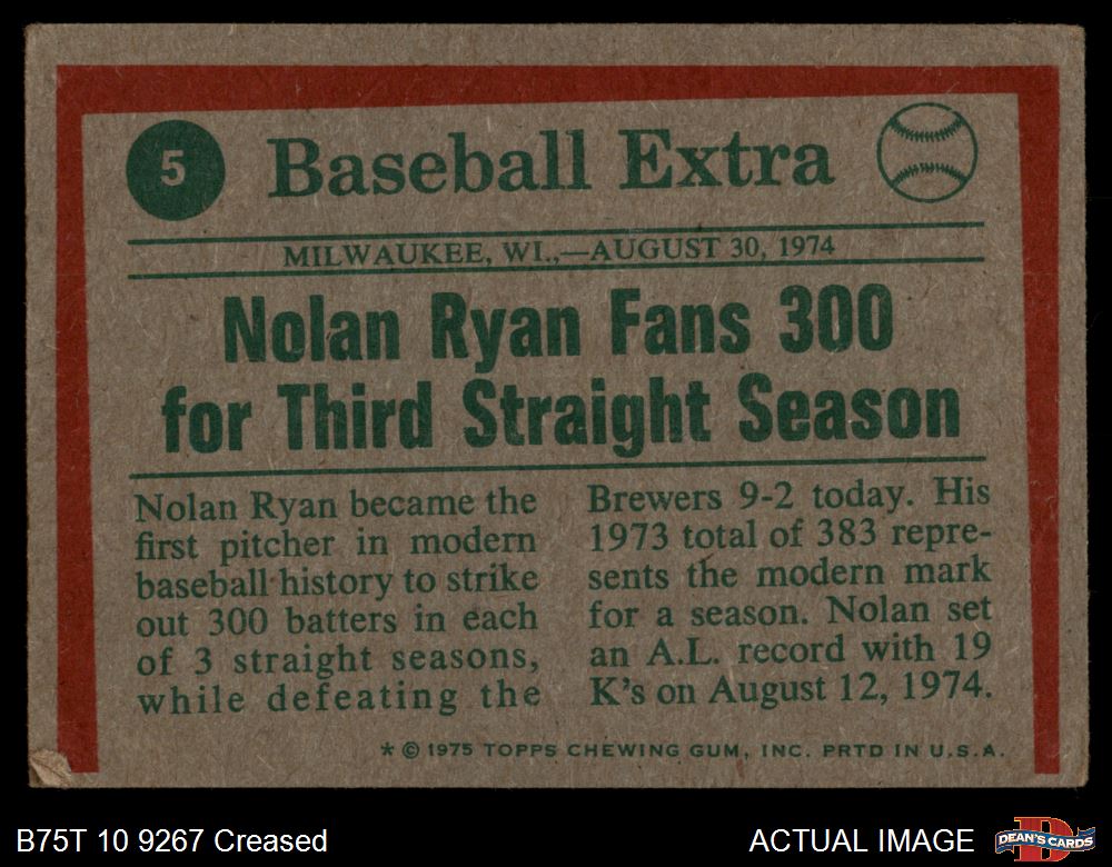 1975 Topps #5 - Nolan Ryan Fans 300 2 - GOOD