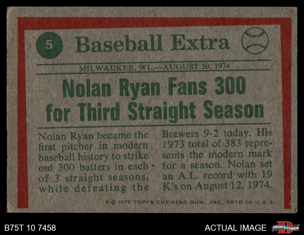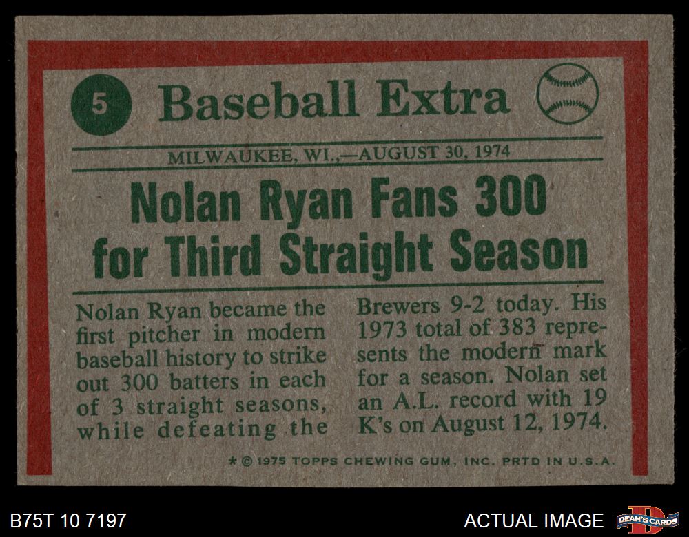 1975 Topps #5 - Nolan Ryan Fans 300 3 - VG