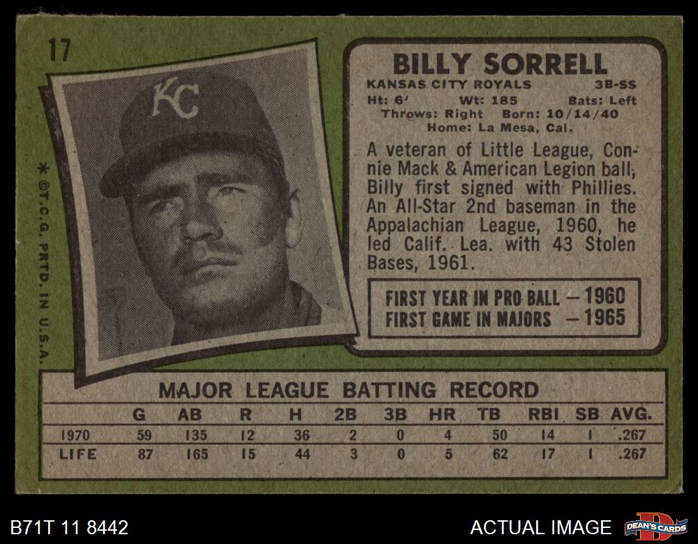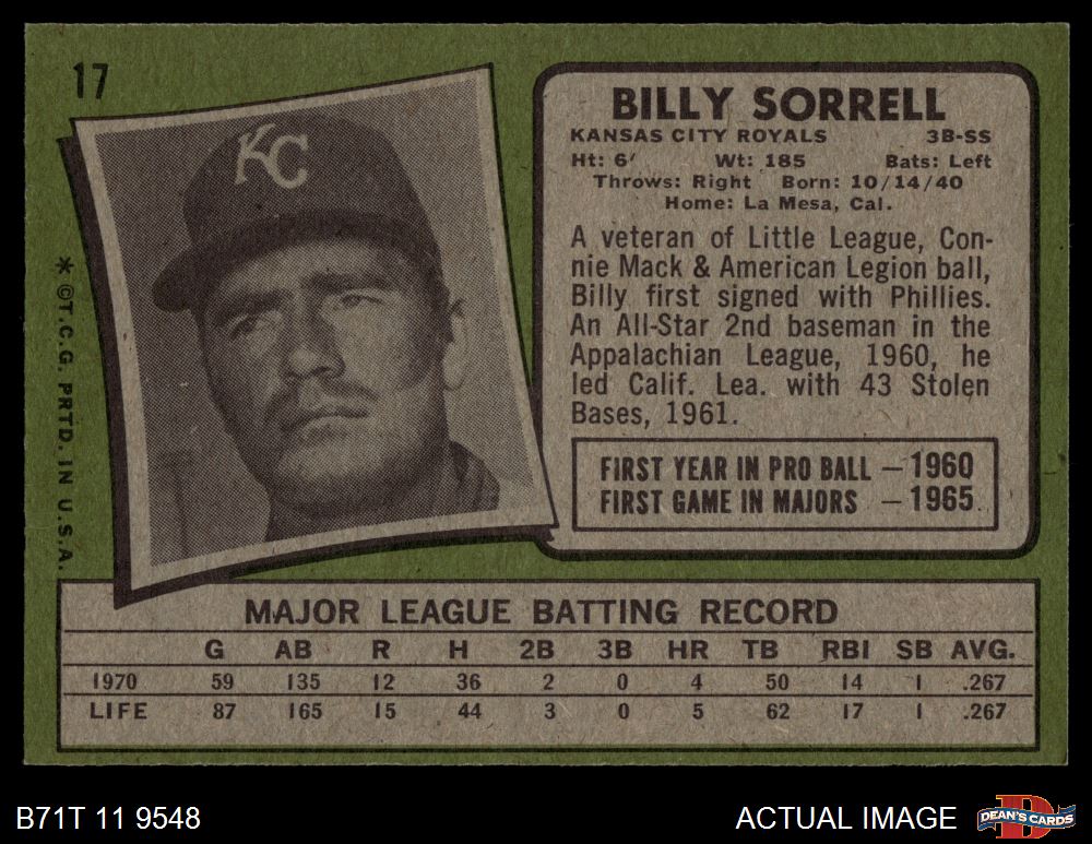 1971 Topps #17 - Billy Sorrell 4 - VG/EX