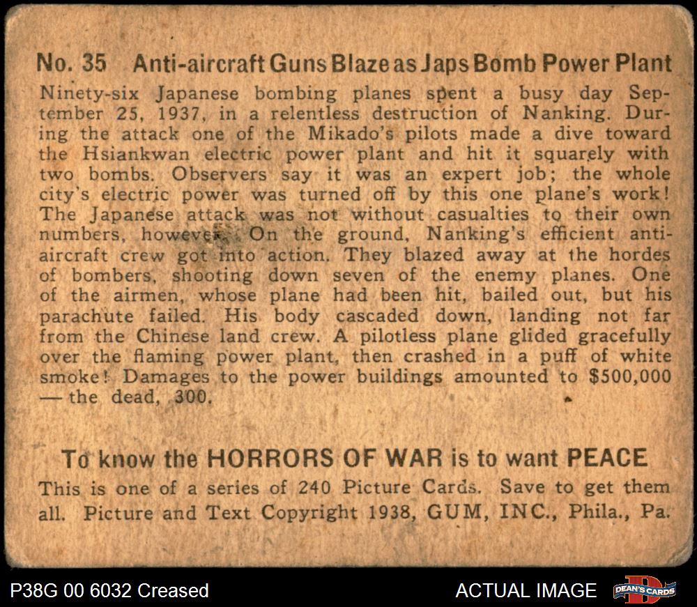 1938 Horrors of War #35 Anti-aircraft Guns Blaze as Japs Bomb Power Plant