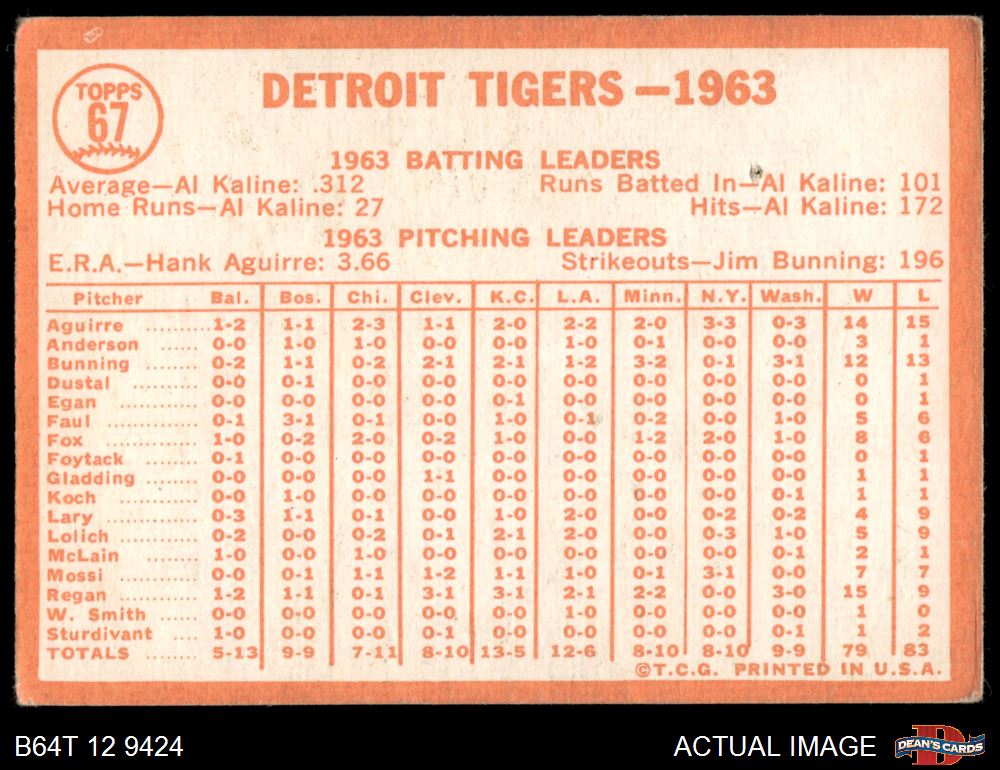 1964 Topps #67 Tigers Team 1.5 - FAIR