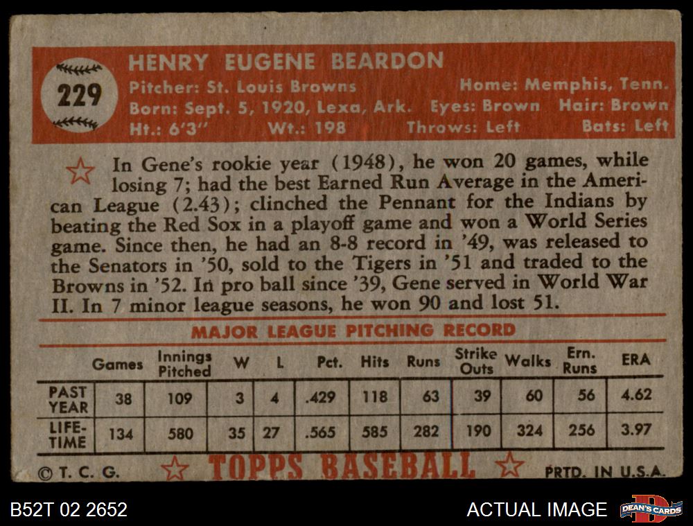 1952 Topps #229 Gene Bearden 3 - VG