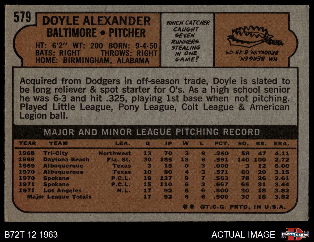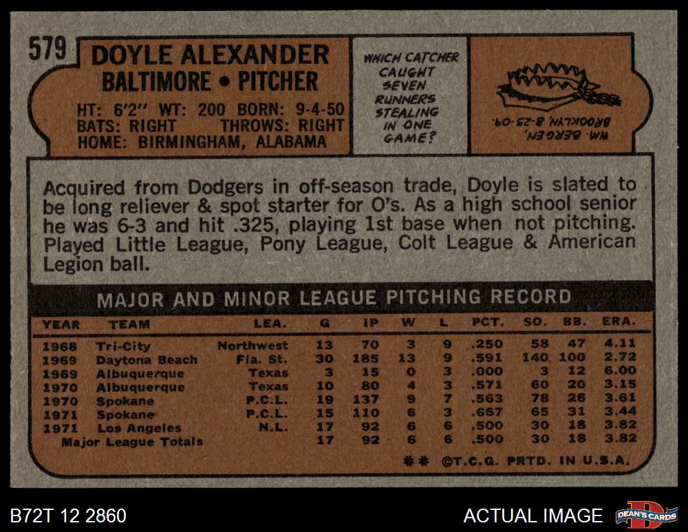 1972 Topps #579 Doyle Alexander