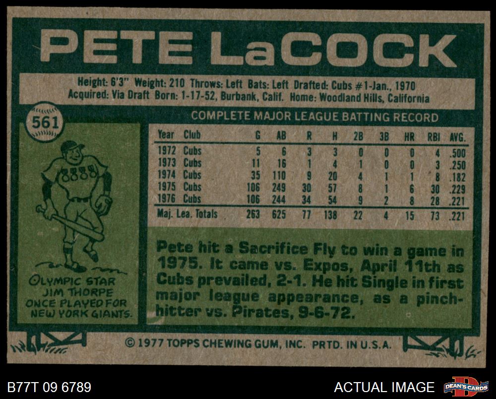 1977 Topps #561 Pete LaCock 4 - VG/EX