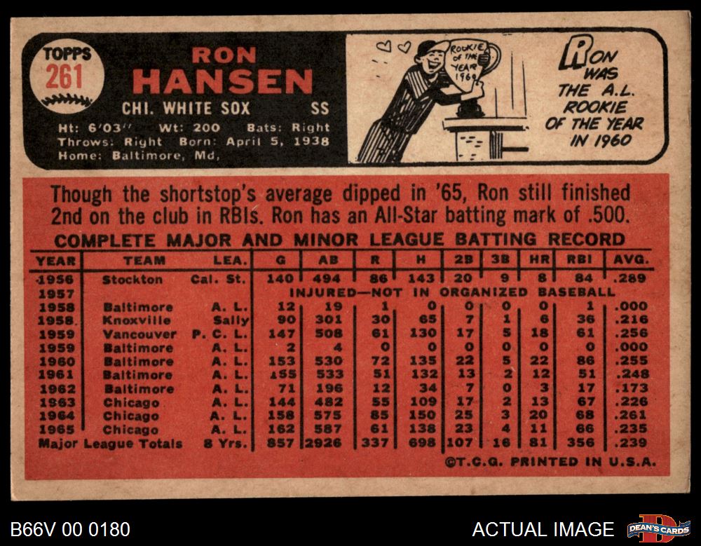 1966 Topps Venezuelan #261 Ron Hansen 5 - EX