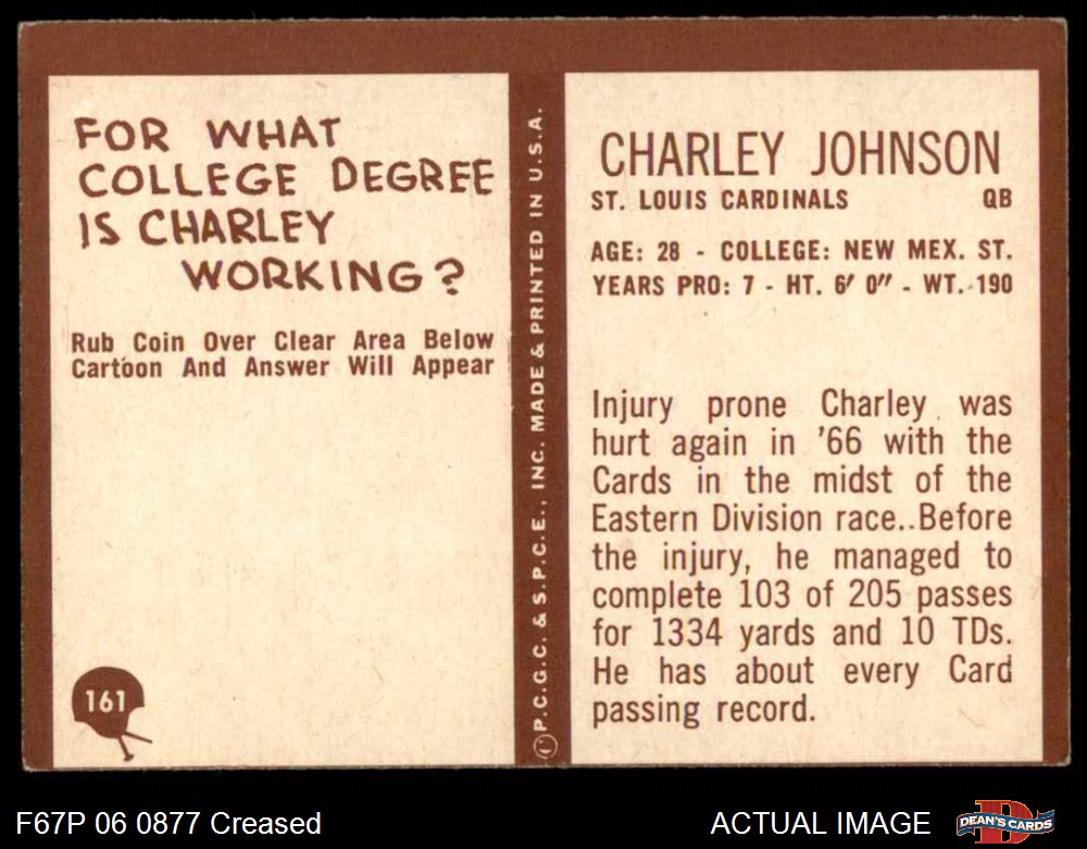 1967 Philadelphia #161 Charley Johnson Front Thumbnail