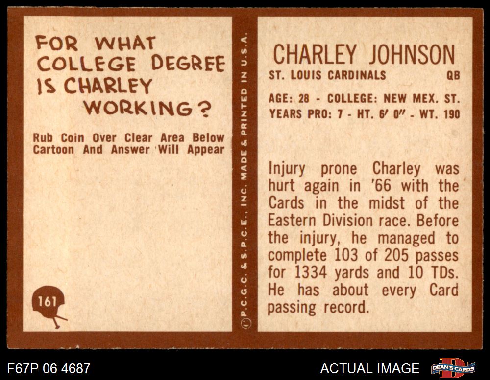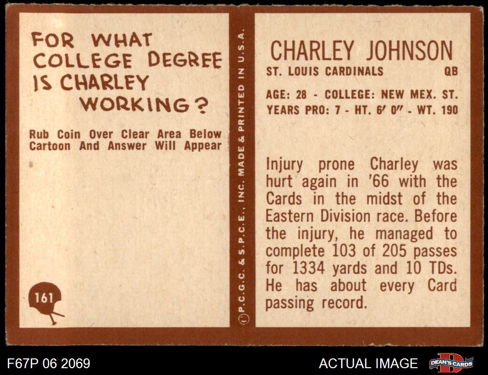 1967 Philadelphia #161 Charley Johnson 5 - EX